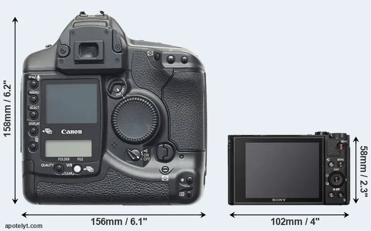 | 7. | Canon 1Ds | 156 mm | 158 mm | 80 mm | 1265 g | 600 | Y | Sep 2002 | US$ 8 999 | ebay.com | |