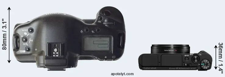 The above size and weight comparisons are to some extent incomplete and possibly misleading, as the HX95 has a lens built in, whereas the 1D is an interchangeable lens camera that requires a separate lens. Attaching the latter will add extra weight and bulk to the setup. You can compare the optics available for the 1D and their specifications in the Canon EF Lens Catalog.