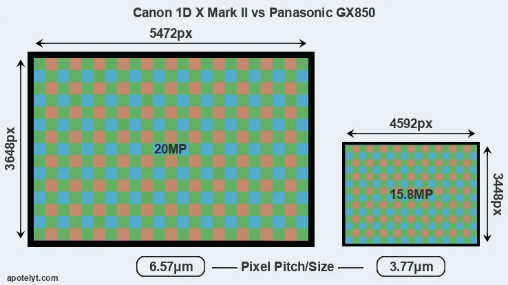 | Sensor Specs | Canon 1D X Mark II | Panasonic GX850 |