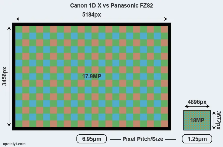 | Sensor Specs | Canon 1D X | Panasonic FZ82 |