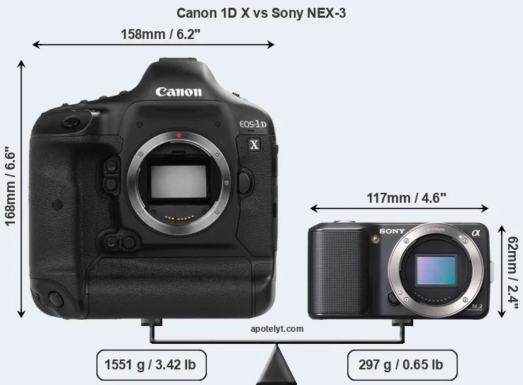 Size Canon 1D X vs Sony NEX-3