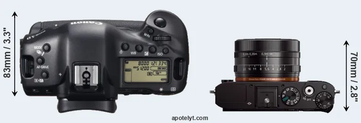 Size Canon 1D X vs Sony RX1