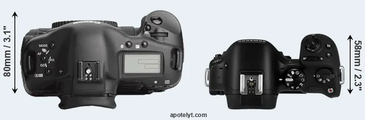 | 5. | Canon 1Ds Mark II | 156 mm | 158 mm | 80 mm | 1215 g | 1200 | Y | Sep 2004 | US$ 7 999 | ebay.com | |