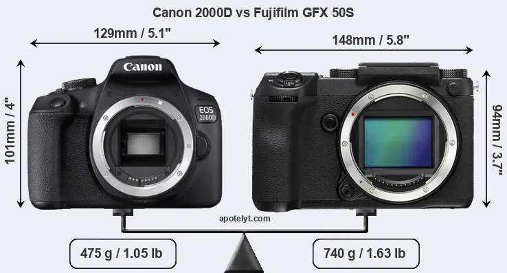 | Body Specs | Canon 2000D | Fujifilm GFX 50S |