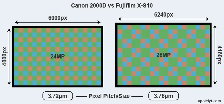 | Sensor Specs | Canon 2000D | Fujifilm X-S10 |