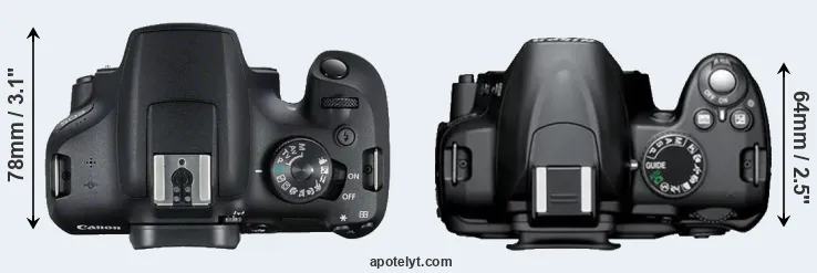 | 8. | Canon 1200D | 130 mm | 100 mm | 78 mm | 480 g | 500 | n | Feb 2014 | US$ 449 | ebay.com | |