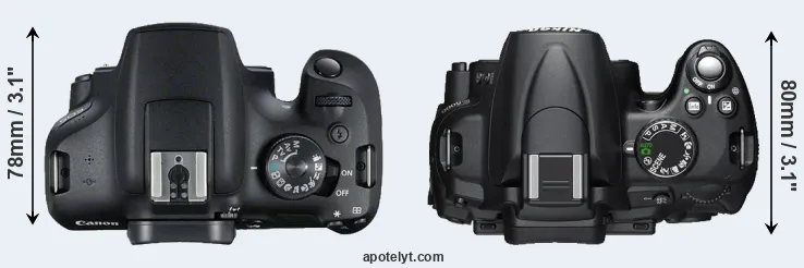 | 8. | Canon 1200D | 130 mm | 100 mm | 78 mm | 480 g | 500 | n | Feb 2014 | US$ 449 | ebay.com | |