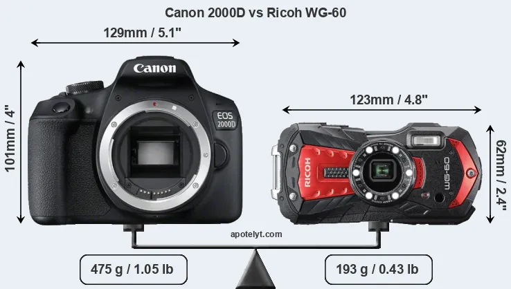 Size Canon 2000D vs Ricoh WG-60