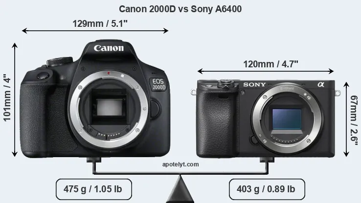 Size Canon 2000D vs Sony A6400