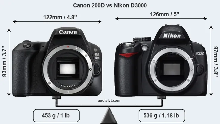 | Body Specs | Canon 200D | Nikon D3000 |