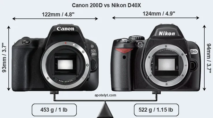 | Body Specs | Canon 200D | Nikon D40X |