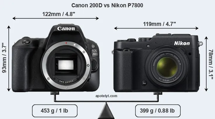 Specifications: Canon 200D vs Nikon P7800