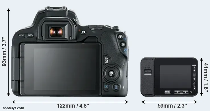| 5. | Canon 250D | 122 mm | 93 mm | 70 mm | 449 g | 1070 | n | Apr 2019 | US$ 599 | amazon.com | |