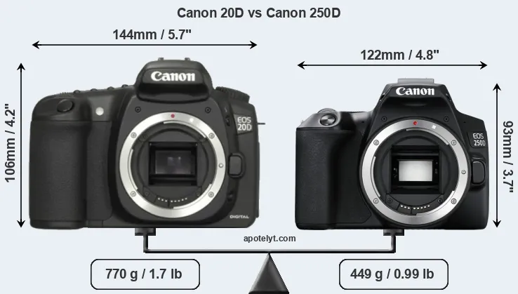 Specifications: Canon 20D vs Canon 250D
