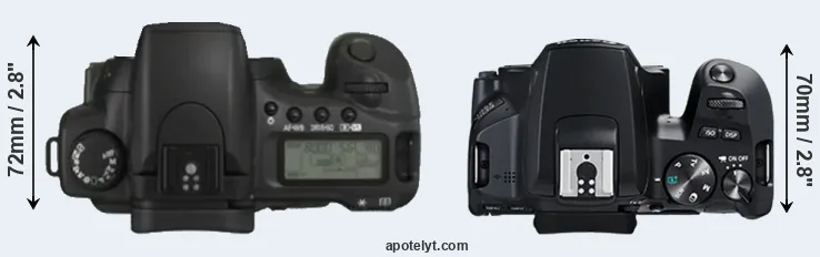 | 2. | Canon 250D | 122 mm | 93 mm | 70 mm | 449 g | 1070 | n | Apr 2019 | US$ 599 | amazon.com | |