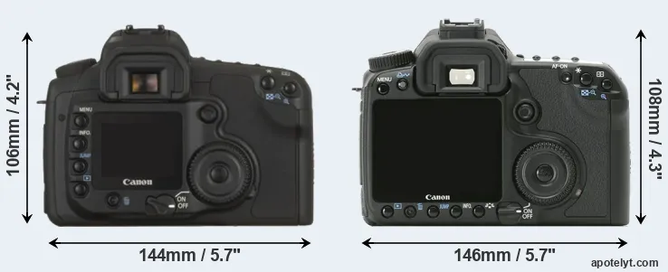 | 1. | Canon 20D | 144 mm | 106 mm | 72 mm | 770 g | 700 | n | Aug 2004 | US$ 1 499 | ebay.com | |