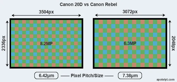 | Sensor Specs | Canon 20D | Canon Rebel |