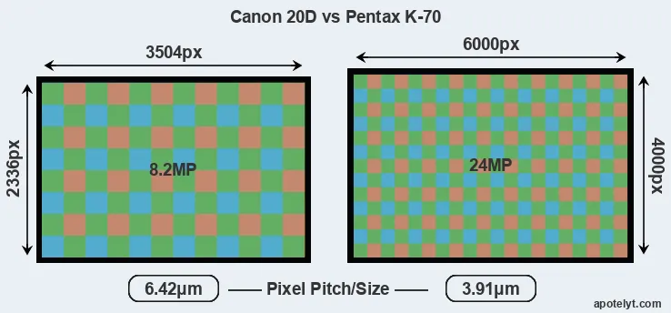 | Sensor Specs | Canon 20D | Pentax K-70 |