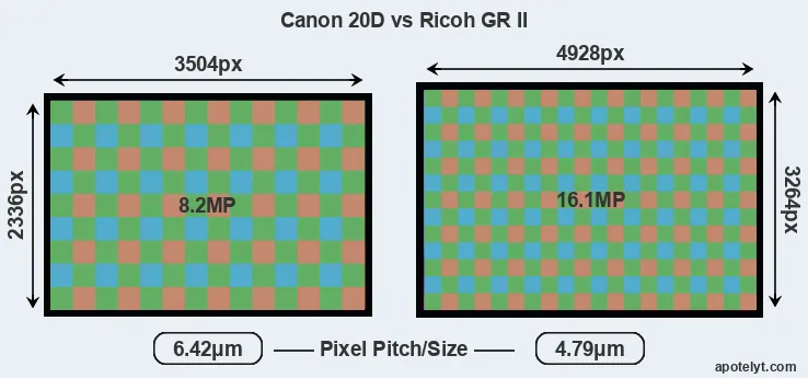 | Sensor Specs | Canon 20D | Ricoh GR II |