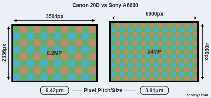 | Sensor Specs | Canon 20D | Sony A6600 |