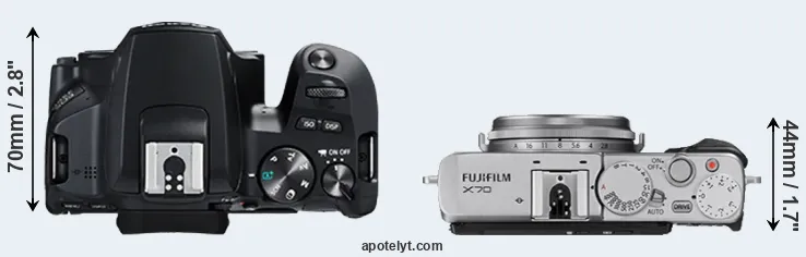 | Body Specs | Canon 250D | Fujifilm X70 |