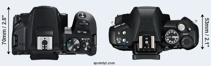 | 1. | Canon 250D | 122 mm | 93 mm | 70 mm | 449 g | 1070 | n | Apr 2019 | US$ 599 | amazon.com | |