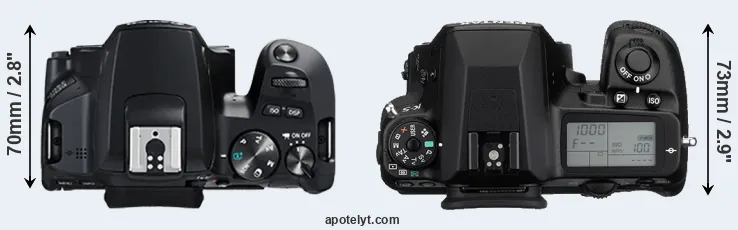 | 16. | Pentax K-30 | 130 mm | 97 mm | 71 mm | 650 g | 410 | Y | May 2012 | US$ 849 | ebay.com | |