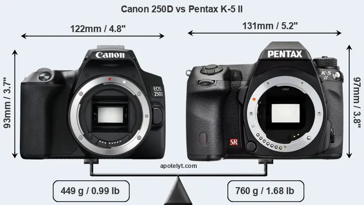 | Body Specs | Canon 250D | Pentax K-5 II |