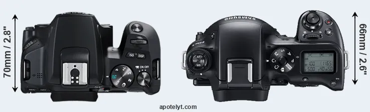 | 1. | Canon 250D | 122 mm | 93 mm | 70 mm | 449 g | 1070 | n | Apr 2019 | US$ 599 | amazon.com | |