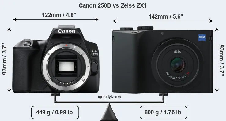 Specifications: Canon 250D vs Zeiss ZX1