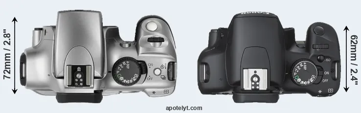 | 1. | Canon 300D | 142 mm | 99 mm | 72 mm | 649 g | 400 | n | Aug 2003 | EUR 1 095 | ebay.com | |