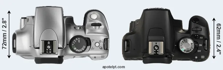 | 1. | Canon 300D | 142 mm | 99 mm | 72 mm | 649 g | 400 | n | Aug 2003 | US$ 899 | ebay.com | |