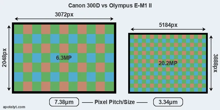 | Sensor Specs | Canon 300D | Olympus E-M1 II |