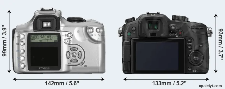 Going beyond this snapshot of core features and characteristics, what are the differences between the Canon EOS 300D and the Panasonic Lumix DMC-GH3? Which one should you buy? Read on to find out how these two cameras compare with respect to their body size, their imaging sensors, their shooting features, their input-output connections, and their reception by expert reviewers.