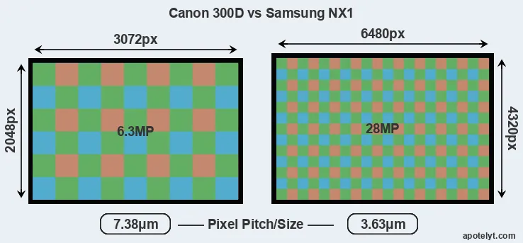 | Sensor Specs | Canon 300D | Samsung NX1 |