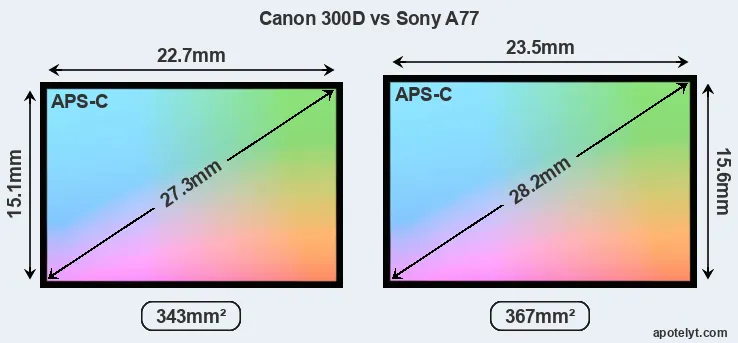 | Sensor Specs | Canon 300D | Sony A77 |
