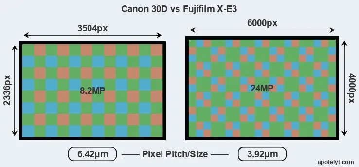 | Sensor Specs | Canon 30D | Fujifilm X-E3 |