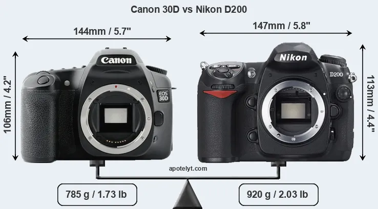 Specifications: Canon 30D vs Nikon D200