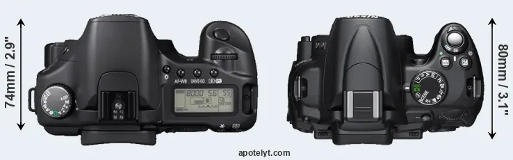 | 8. | Canon 70D | 139 mm | 104 mm | 79 mm | 755 g | 920 | Y | Jul 2013 | US$ 1 199 | ebay.com | |