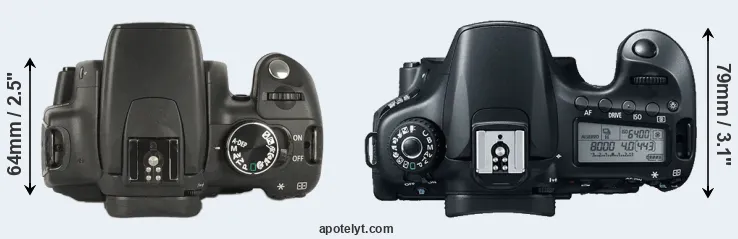 | 8. | Canon 70D | 139 mm | 104 mm | 79 mm | 755 g | 920 | Y | Jul 2013 | US$ 1 199 | ebay.com | |
