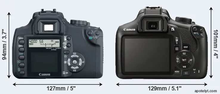 | 15. | Canon T5 | 130 mm | 100 mm | 78 mm | 480 g | 500 | n | Feb 2014 | US$ 449 | ebay.com | |