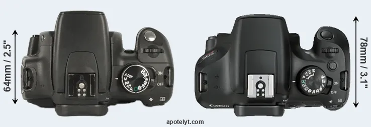 | 14. | Canon SL2 | 122 mm | 93 mm | 70 mm | 453 g | 650 | n | Jun 2017 | US$ 549 | ebay.com | |