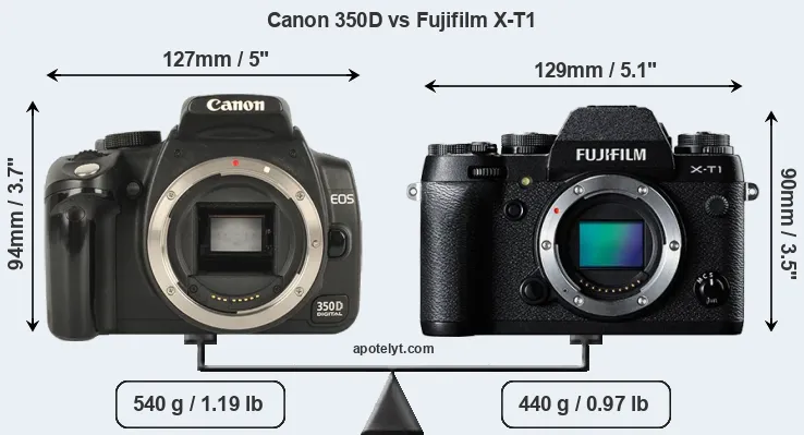 | Body Specs | Canon 350D | Fujifilm X-T1 |