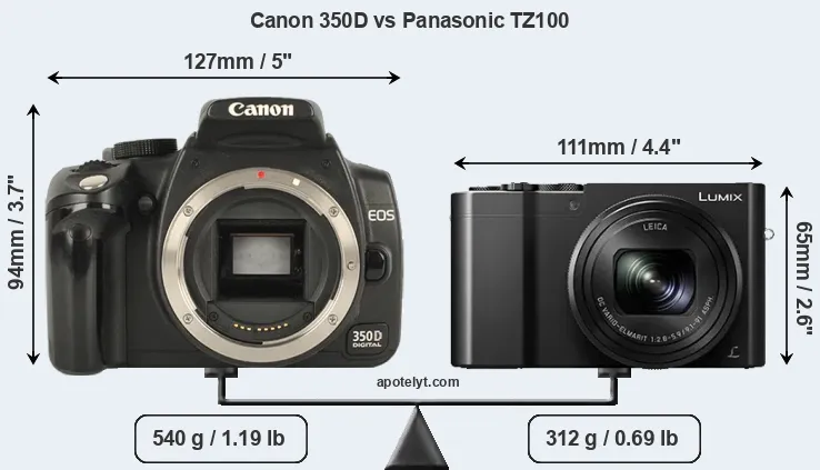 | Body Specs | Canon 350D | Panasonic TZ100 |