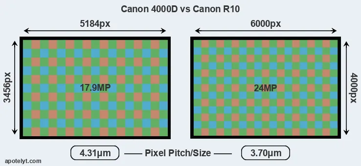 | Sensor Specs | Canon 4000D | Canon R10 |
