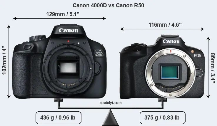 | Body Specs | Canon 4000D | Canon R50 |