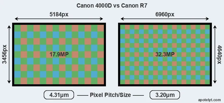 | Sensor Specs | Canon 4000D | Canon R7 |