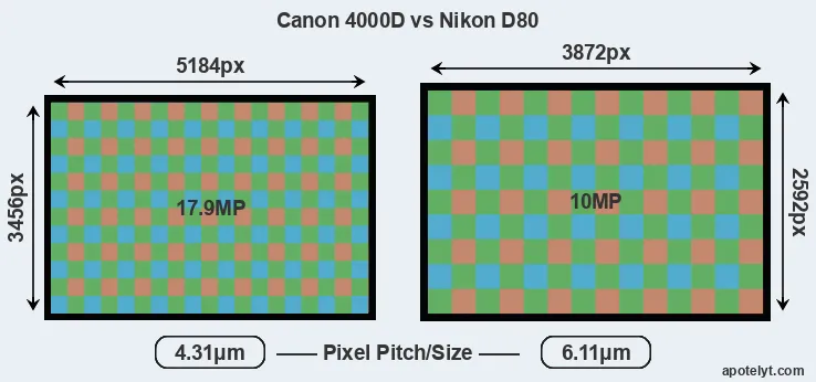 | Sensor Specs | Canon 4000D | Nikon D80 |