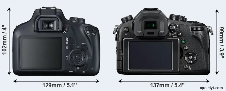 | Body Specs | Canon 4000D | Panasonic FZ1000 |