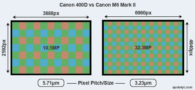 | Sensor Specs | Canon 400D | Canon M6 Mark II |